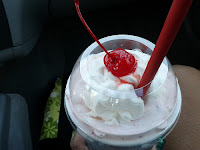Pop and I pulled up to Sonic. I leaned out, ordered him a chocolate malt and a strawberry shake for me. After the car hop brought the treats, dad and I sat there listening to the 40s channel on my Sirius XM radio, and promptly finished the drinks.