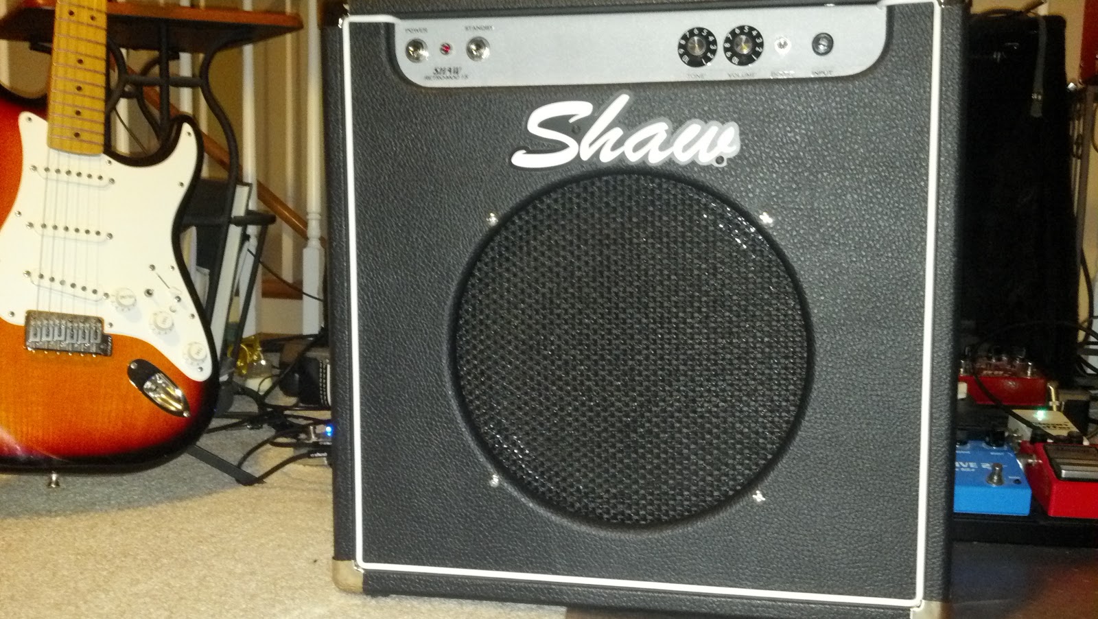 Kevin Shaw, the maker of this new amp, is gonna be mad that I’m showing it here. He prefers to create amplifier heads with separate cabs, and doesn’t want anyone to get the idea that he’s getting into the combo business. I have three other Shaw amps, including a Shaw Retro-Mod 15 in the piggy-back configuration, but I really wanted a grab-and-go amp that works well with pedals, for when I get out and play live. When I asked him to consider making me a combo version, he grit his teeth, shook his head and said, “Just this once!”
