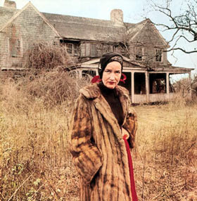 In my search, I was strangely drawn to a photo of a woman in front of a dilapidated mansion. The caption below it read that this woman was a first cousin of Jackie Kennedy Onassis, and that she and her mother were living a pauper’s existence in the midst of opulent surroundings. Their names were Edith “Big Edie” Ewing Bouvier Beale and her daughter, Edith “Little Edie” Bouvier Beale (pictured).